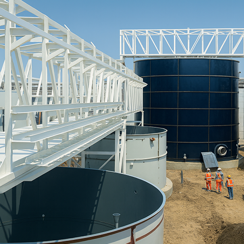 Process tanks and silos are fabricated in stainless steel with hygienic design and precise instrumentation, ensuring product integrity and easy cleaning.